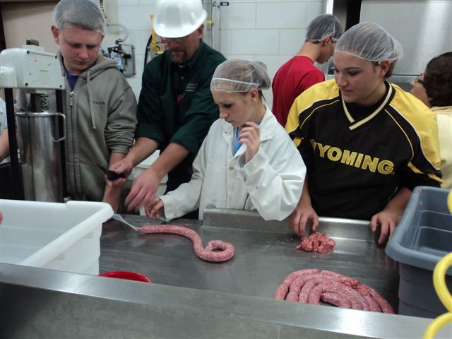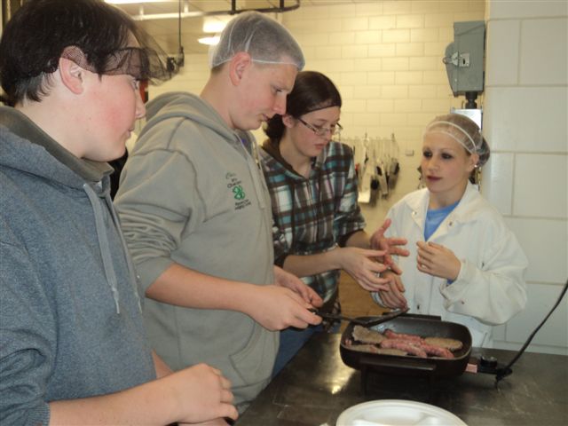 Finally, the group had a small taste of a college laboratory experience, as Dr. Warrie Means, Animal Science Professor, had youth make five different kinds of sausage.