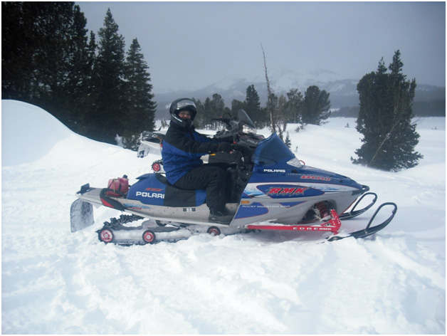That’s Timmery on her machine (called a sled) at Christina Lake in the Wind River Mountains above Lander, Wyo.
