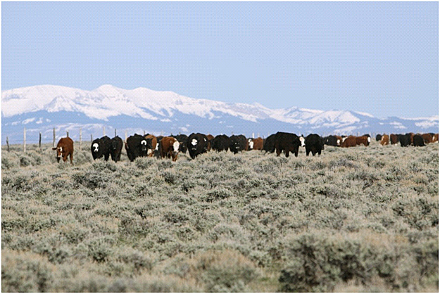 The grass is green. The birds are back in the Green River Valley. The antelope have moved north. The cows are calving or have calved. The air is warmer and May flowers are blooming. All of these events are signs of spring and the time when cattle are turned out on the open range.  May 1 to June 1 is when ranchers in this area put their cattle from the hay meadows to the BLM sagebrush lands for spring pasture.  For days, the old cow has been watching to see if the gate to the spring range is open.  As the old cow sees the open gate to the sagebrush range, she charges through the gate heading for her favorite spot in the allotment (land individuals contract for a grazing lease through government agencies).  The calves have to hustle to stay with their mothers.  Spring has officially started.
