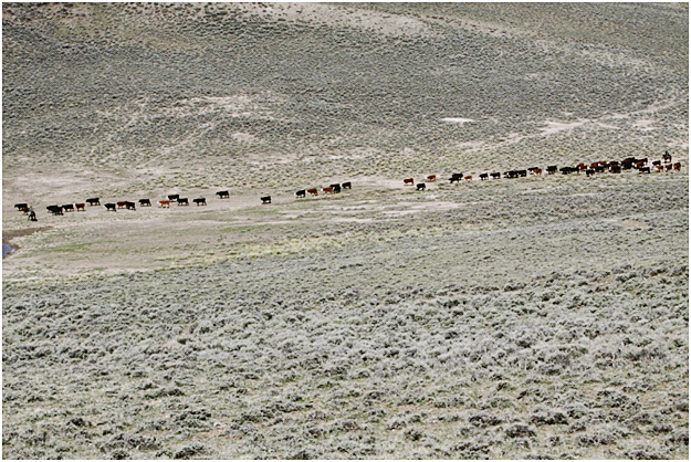 When the Green River Valley was settled in the 1800s and early 1900s, an individual would file on land through a homestead entry of 160 acres or a desert land entry of 320 acres.  This was not enough land to run a herd of cattle large enough to make a living.  Depending on the amount of moisture, it takes 3-33 acres per animal unit per month (AUM) to provide enough forage to feed one cow in the basin and foothills.  In the foothills and mountains, it takes 1-6 acres per month to take care of one cow.