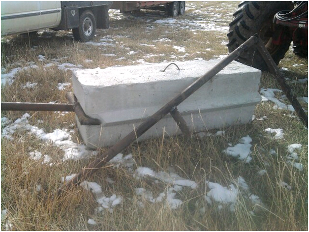 The three inch circlular hole on the right of the block is designed to accept used oil field pipe.