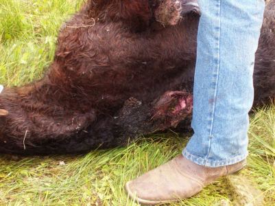 Last spring the coyotes were after our registered calves and just about killed one. Luckily my Grandma went up there and caught the coyotes, killing one, while the other ran off. If they kill our calves that can cost us $2,000 and up. That’s a pricey meal for those coyotes.