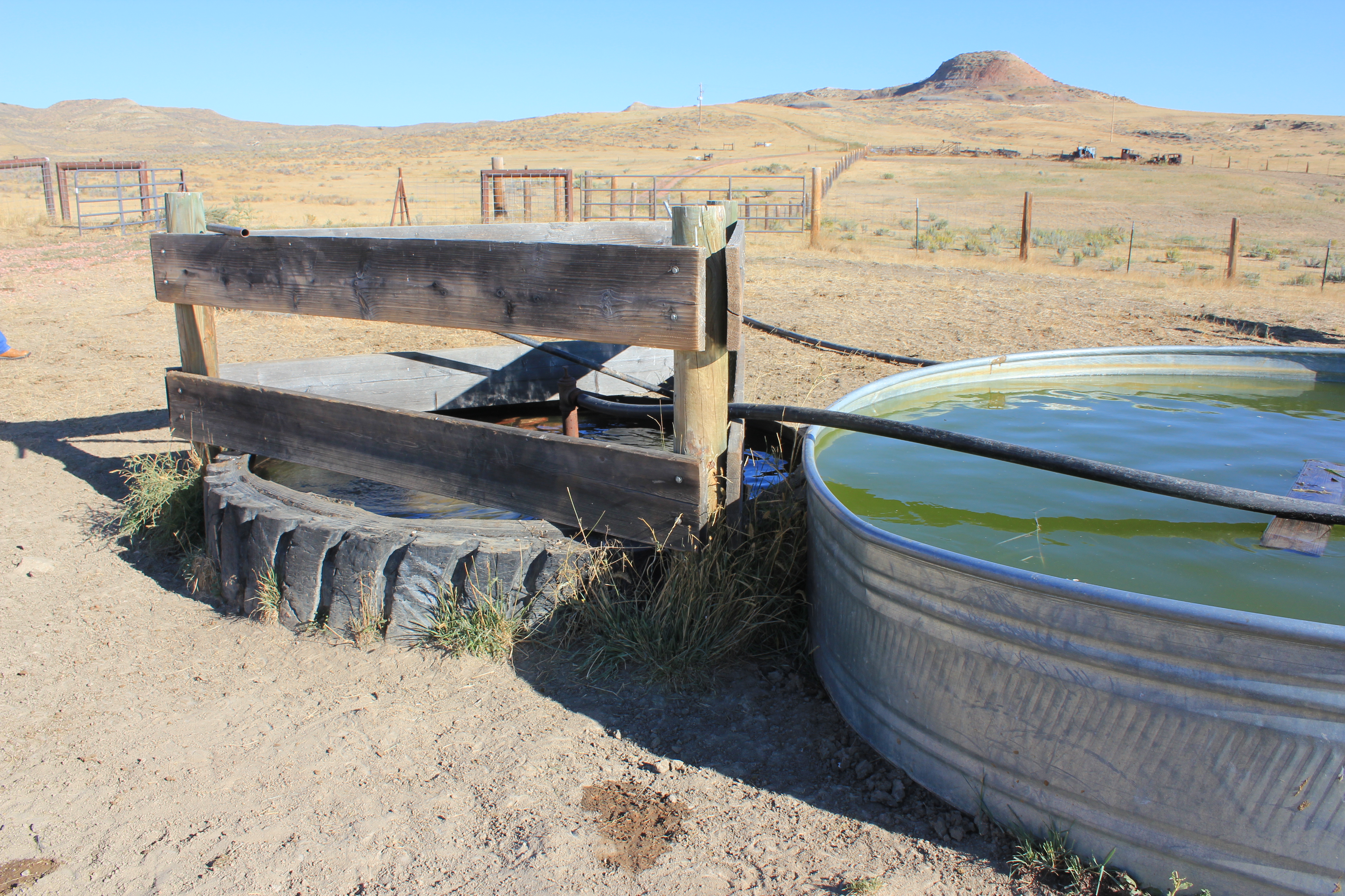 One of the biggest reservoirs on the ranch is connected to the pipeline watering system and the runoff from the water tanks feeds back into the reservoir through a grate and travels down a rock path to the reservoir. The rock path is used to prevent water erosion on the pasture.