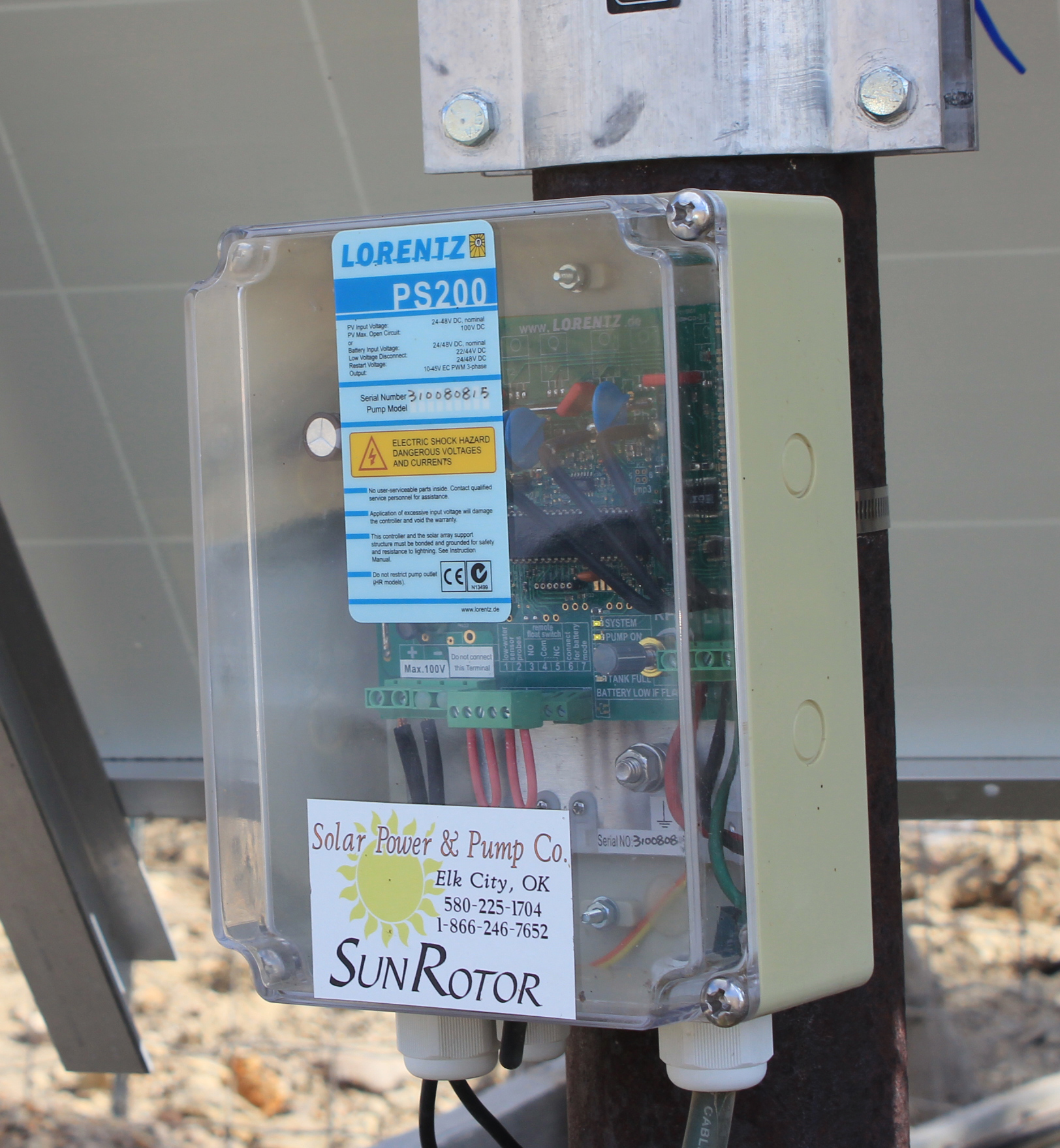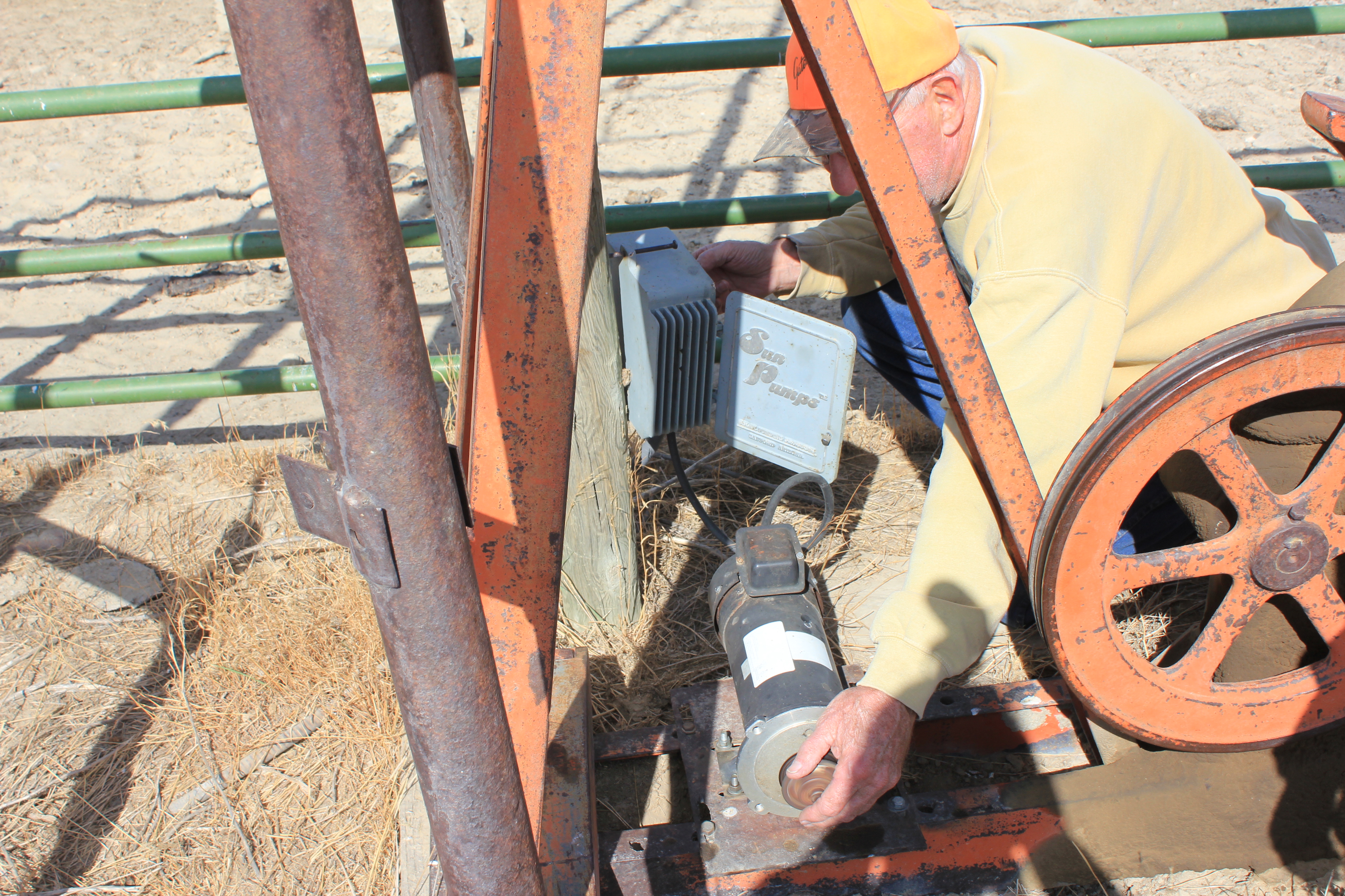 The solar panels will pump water as long as the sun is shining on the panels. The Harshbarger’s even have a solar panel that rotates to follow the sun, which keeps it pumping water longer. There is also a control panel on each well that alerts the rancher as to what level the well is pumping.