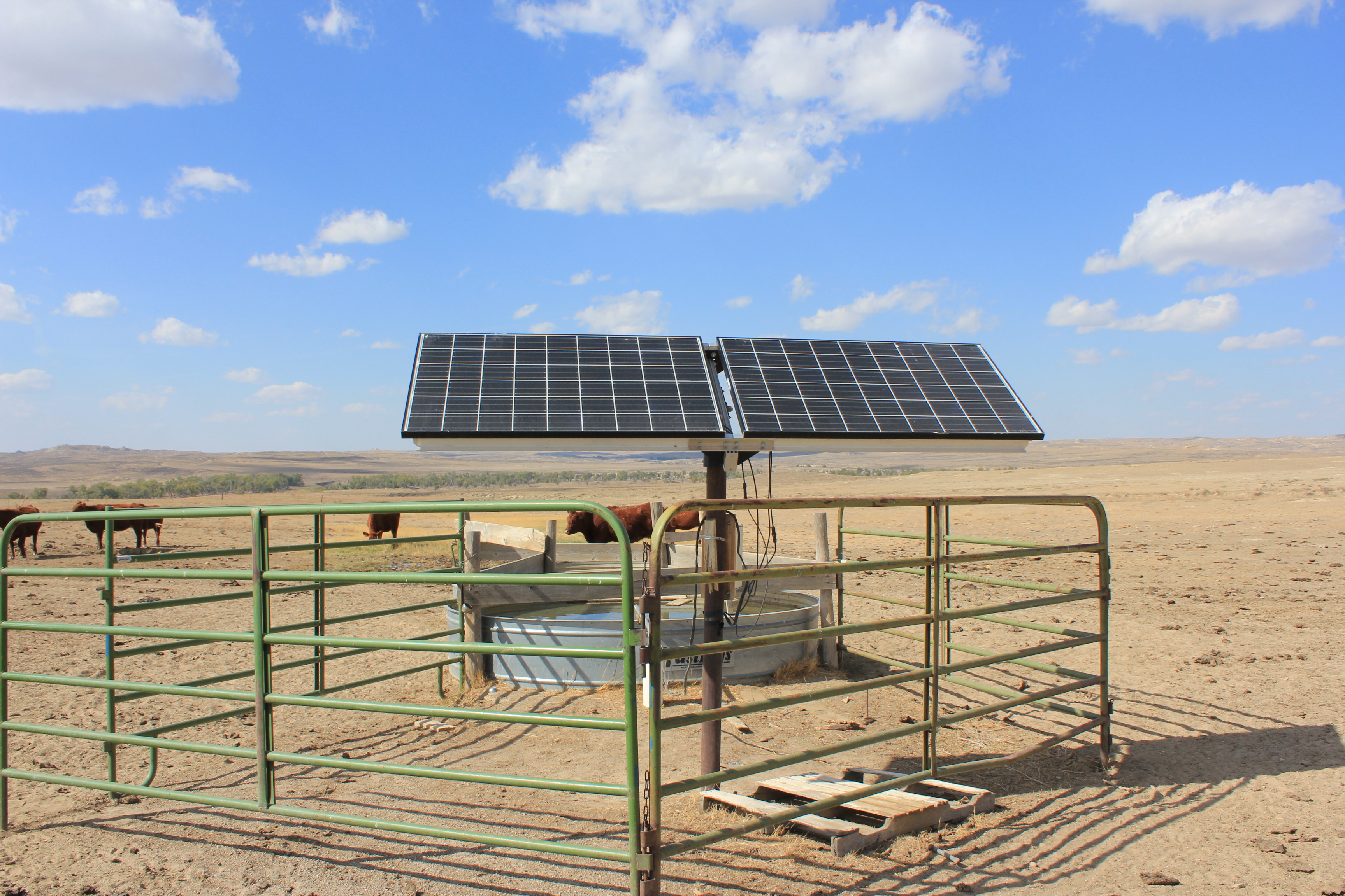 Solar panels are used to pump water for the cattle on Bob and Jean Harshbarger’s ranch.