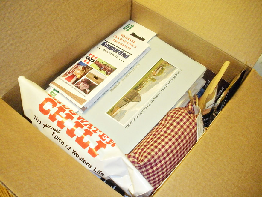 The Wyoming Stock Growers supplied an “Eat Beef: The West Wasn’t Won on Salad” bumper sticker, a “Code of the West” magnet, a Wyoming ranch history book from the Wyoming State Historic Preservation Office and information about the WSGA Supporting Membership.