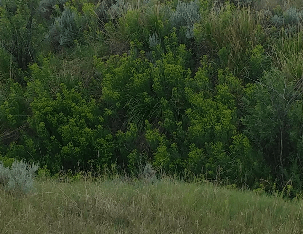 On Friday, July 17, Kyle and I checked water tanks, repaired any tanks that needed it and started on the invasive species work on other parts of the ranch. Instead of spraying for leafy spurge, David uses bugs called “flea beetles.” The beetles are set on large, thick patches of spurge and then over time they will eat the patches completely.
